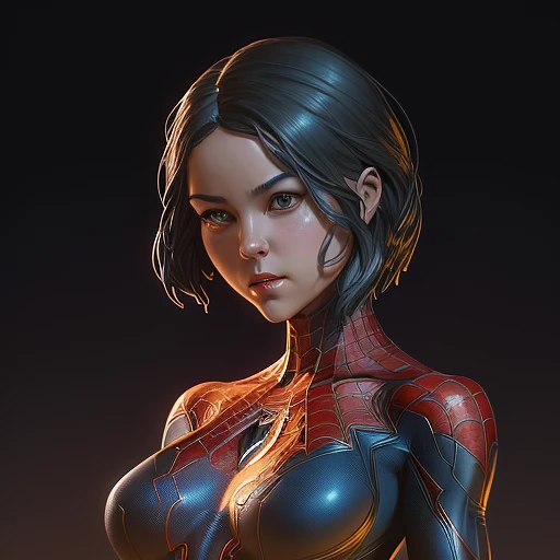 figurine character version of Marvel's Spider-girl, glowing lights! ! intricate, elegant, highly detailed, digital painting, artstation, concept art, smooth, sharp focus, illustration, art by artgerm and greg rutkowski and alphonse mucha