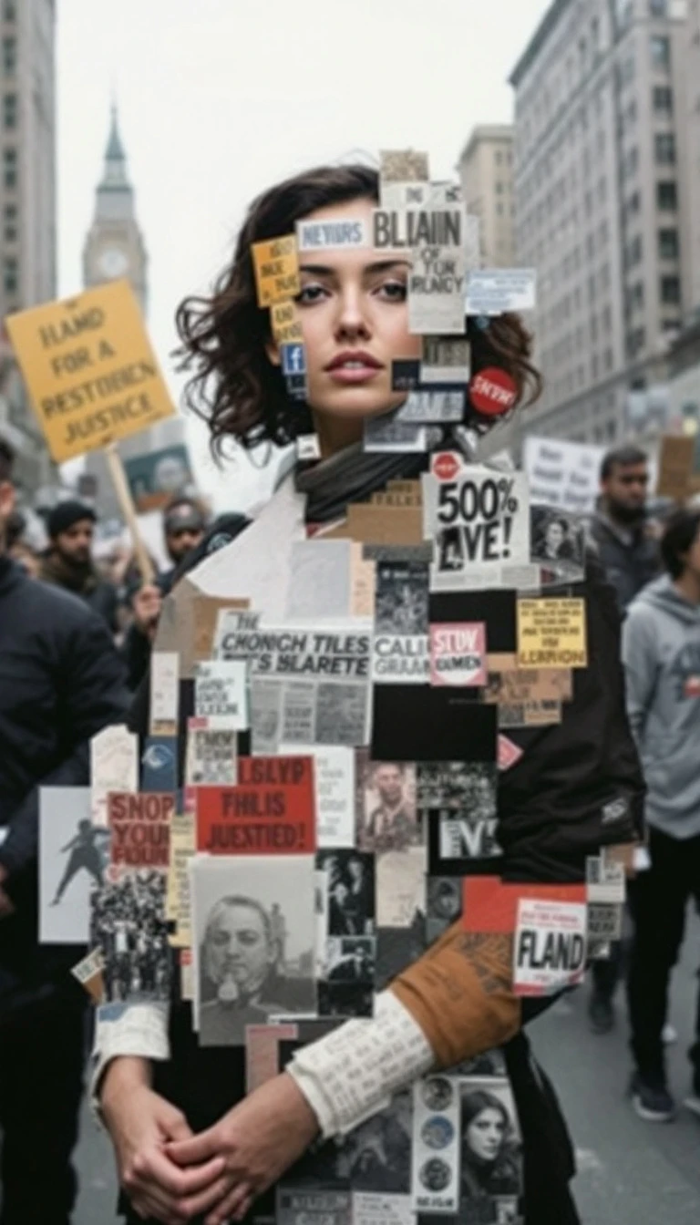 (26) A photographic collage, influenced by the fragmented style of Hannah Höch, features a female activist, her form constructed from news clippings, protest signs, and powerful imagery, creating a visual testament to the ongoing fight for social justice, highlighting activism and resistance. Conceptual art, collage, powerful, social commentary.