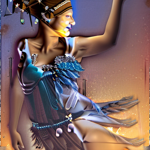 Stable Diffusion prompt: dancer with feathers and jewelry at night on the b...