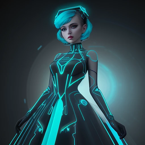 a light up dress by hiveart electronic fashion art photoshoot, in cinema4d rendering style, black and cyan, undefined anatomy, syd mead, anastasiya dobrovolskaya, ultra fine detail, 8k 3d --ar 51:91 --s 750 --v 5. 1