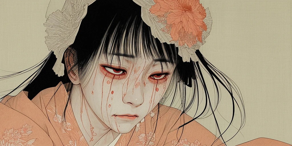 Woman crying, artwork by Takato Yamamoto and Chika Yamada, very detailed, realistic, hyperrealistic