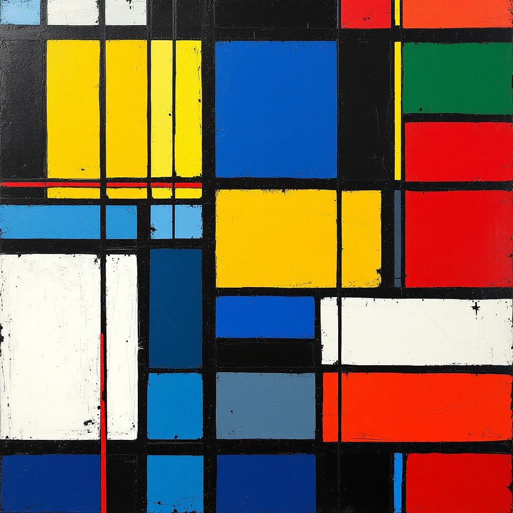 Create an artistic image, with a pop art style with allusions to the artist Roy Litstein and the primary colors of piet mondrian and his rectangles and lines. that is related to the name: art and roll