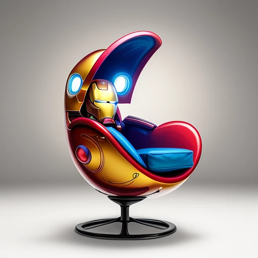 Product photography, a colorful egg chair with design iron man on it, in the style of esteban vicente, pixel perfect, illusionary spaces, furaffinity, brian oldham, high tonal range, cloisonnism