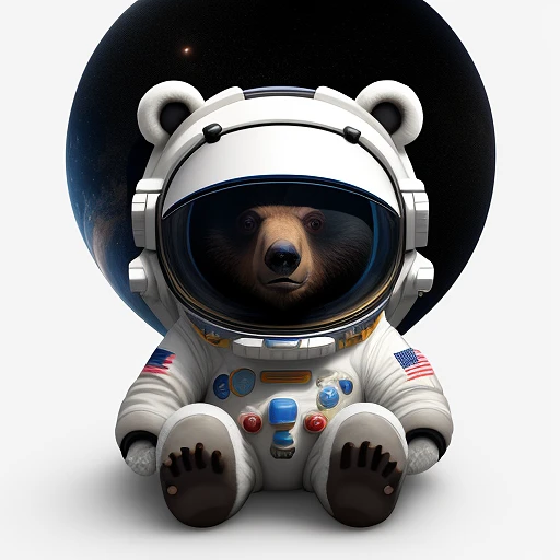 A child-like bear in the style of space culture themes caricature theme alien like created in unreal engine white background