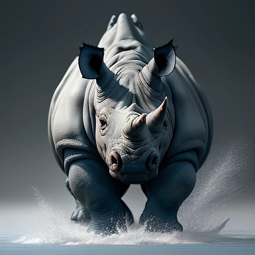 An angry rhino made of porcelain white and blue and red is preparing to attack, in its natural habitat, hyper-realistic, Use a Nikon D850 DSLR camera at 32k resolution with a 200mm lens and F 1. 2 aperture setting to blurs the background and isolates the subject, CGI render, Unreal Engine 5, Octane Render, organic forms, complex patterns, hyper-detailed, high-resolution, --9:16, full fram --Chaos 75, wildlife photography