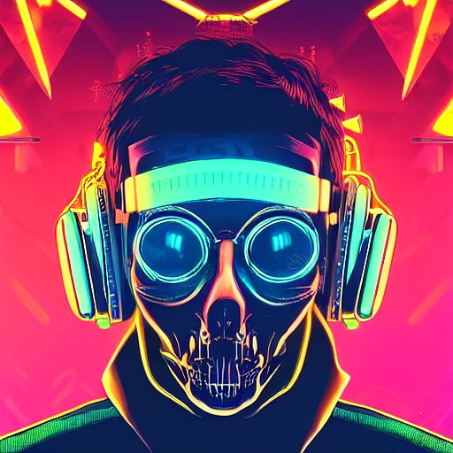 nft style, cyberpunk, synthwave, tarot card with intricate detailed frame around the outside | with cyberglasses neon, and earphone, dj sound, futuristic, gold, diamond, side profile of cyberpunk body with cyborg skull | cyberpunk | styled in Art Nouveau | insanely detailed | embellishments | high definition | concept art | digital art | vibrant, hyperdetailed, intricate, kaleidoscope, extremely beautiful, ranking ligth, cinematic lighting, photo realistic, white background max detail, ranking ligth, cinematic lighting, photo realistic, by mandy jurgens, moebus, jon foster, alphonse mucha, glazing, pablo picasso, pinot noir, chiaroscuro, leonardo da vinci, Michelangelo, 8k