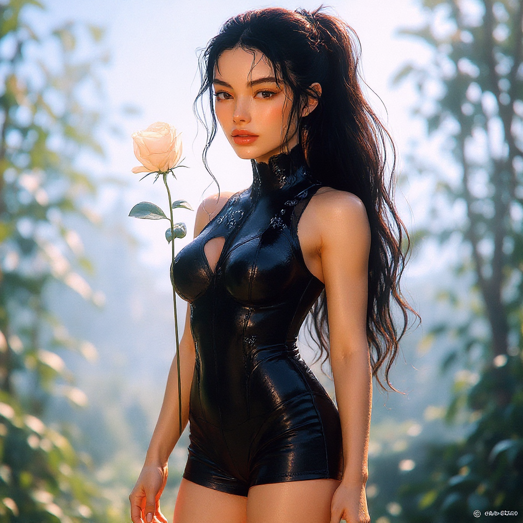 FLUX prompt: Beautiful . Voluptuous tall woman. Pony tail. Obj...