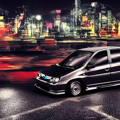 Honda van, shimmery metallic black job paint, aggressive look, tuned, full car only, in motion, (bright headlights on:1. 6) , (at night:1. 6) , high speed, (motion blur:1. 3) , (driver:1. 6) , movie action scene, wet road, illegal racing game, (industrial cityscape in background:1. 5) , (detailed stunning environment:1. 5) , (foggy) , moody dark atmosphere, bright headlights, neon underground aesthetics, (sci-fi) , cyberpunk, blade runner, cinematic, cover art, (low front angle) , full view of a car, intricate, highly detailed, digital painting, digital art, artstation, concept art, (complementary colors:1. 5) , (color contrast:1. 5) , best quality masterpiece, photorealistic, detailed, sharp focus, 8k, HDR, shallow depth of field, broad light, high contrast, backlighting, bloom, light sparkles, chromatic aberration, sharp focus, RAW color photo