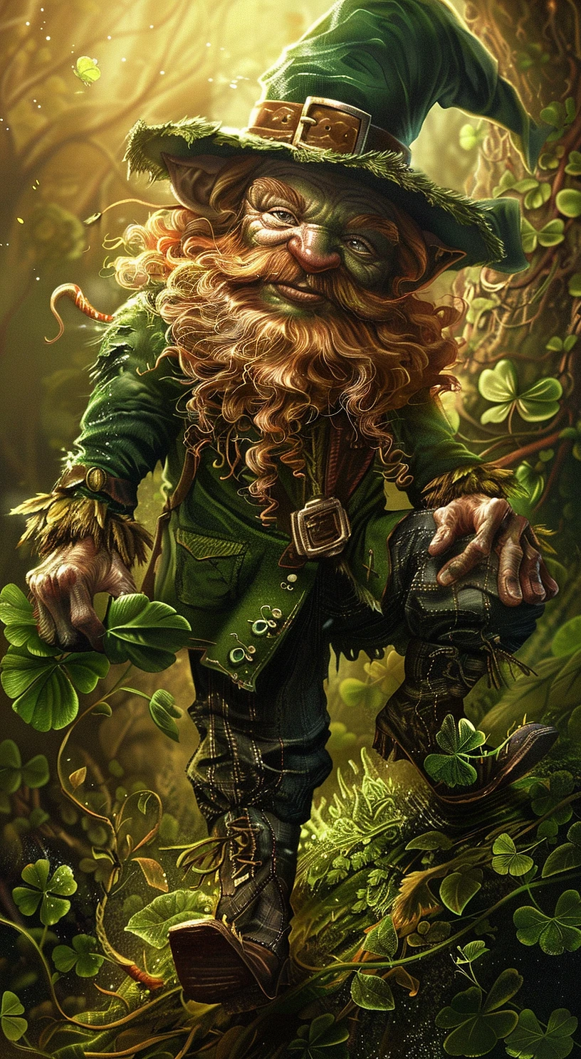 leprechaun, in the style of Irish mythology, Celtic fantasy --ar 35:64