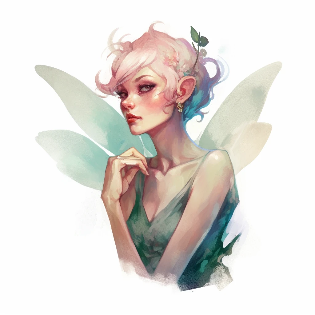 A whimsical icon of a fairy, Pixabay style, pastel and dreamy palette, art by Garald Brom, white background:: --q 2 --v 5