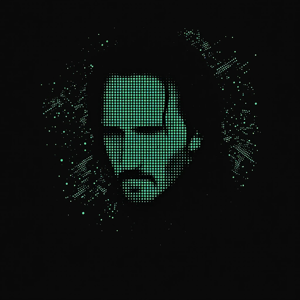 a simple green number dots forming the shape of Keanu Reeves , flat design, vector illustration, on splashed black matrix background, simple shapes and lines, minimalistic style --ar 9:16 --style raw