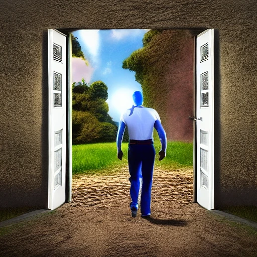 Stable Diffusion prompt: Photo of a ultra realistic man walking from door i...