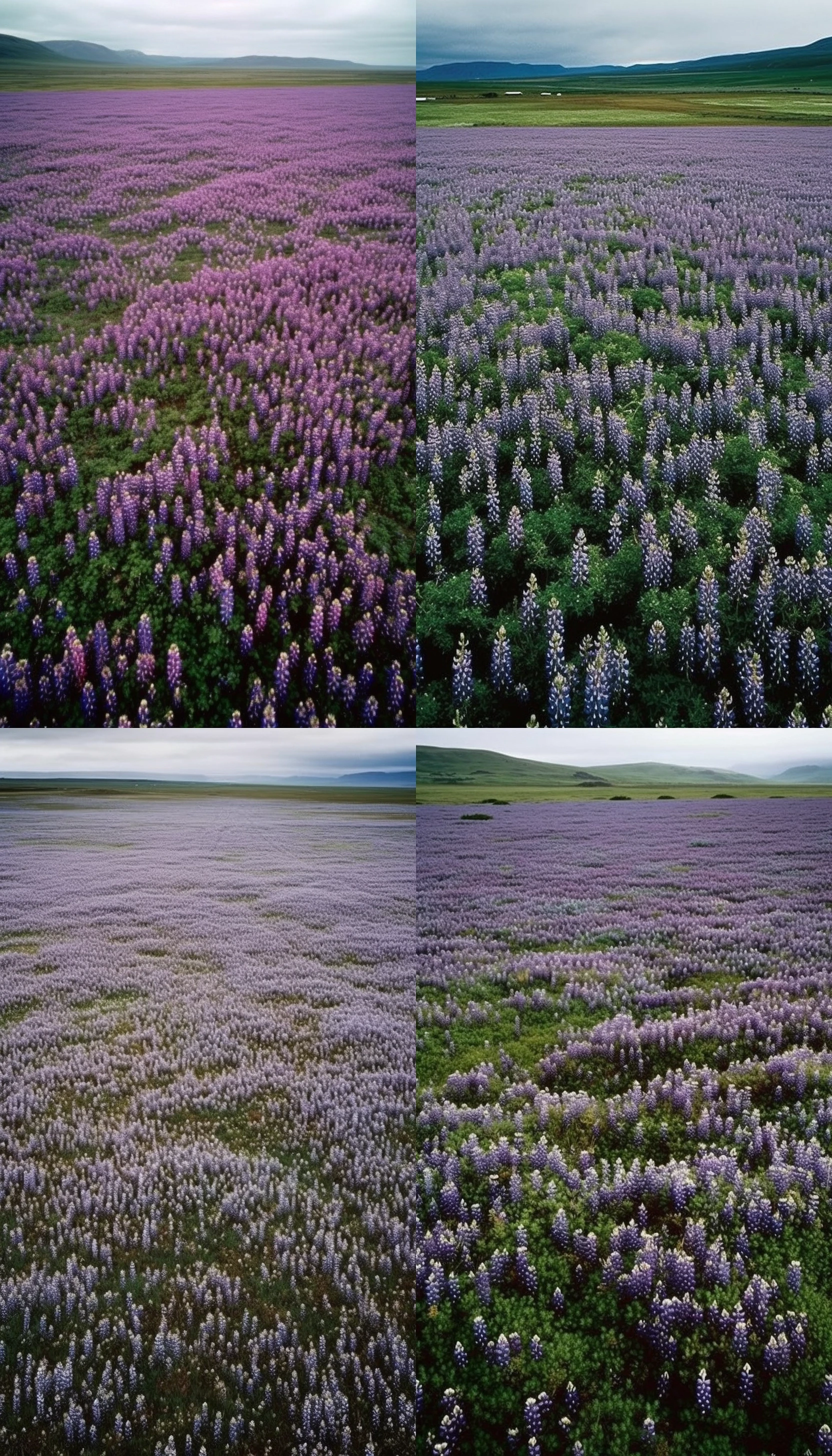 aerial view of a Lupine field in iceland, national geographic, professional photography, rich in details, photography realistic, wide angleshot photo-realistic render, hyperdetailed, Fuji superia 800, 32k --v 5 --q 2 --s 750 --ar 4:7