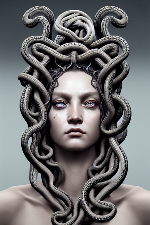 Stable Diffusion prompt: medusa, symmetrical portrait, insanely detailed an...