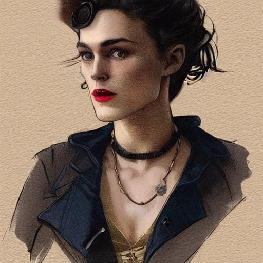 Concept art of a beautiful female industrial 1900s gangster in the style of Ashley Wood , Keira Knightley in Pride and Prejudice, Sam Weber, Joao Ruas, Octavi Arrizabalaga portrait Peaky Blinders aesthetic canon of proportion grunge and vintage and sci fi aesthetic::1, epic lighting, hyperdetailed, artstation, 8k, high resolution, burnt edges, golden ratio, analogous colors, minimalist::1 --uplight --no long neck --no long anatomy --no extra anatomy --no second face —ar 9:16