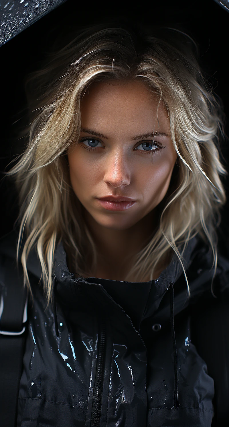 an image on instagram of a beautiful blond woman, in the style of hyper-realistic sci-fi, wet-on-wet blending, high contrast lighting, realistic figures, contemporary siren, dark and brooding designer, 8k resolution --ar 69:128 --s 750 --v 5. 2