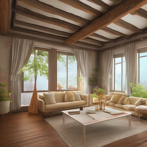 High resolution photography interior design, dreamy sunken living room conversation pit, wooden floor, small windows opening onto the garden, bauhaus furniture and decoration, high ceiling, beige blue salmon pastel palette, interior design magazine, cozy atmosphere; 8k, intricate detail, photorealistic, realistic light, wide angle, kinkfolk photography, A+D architecture