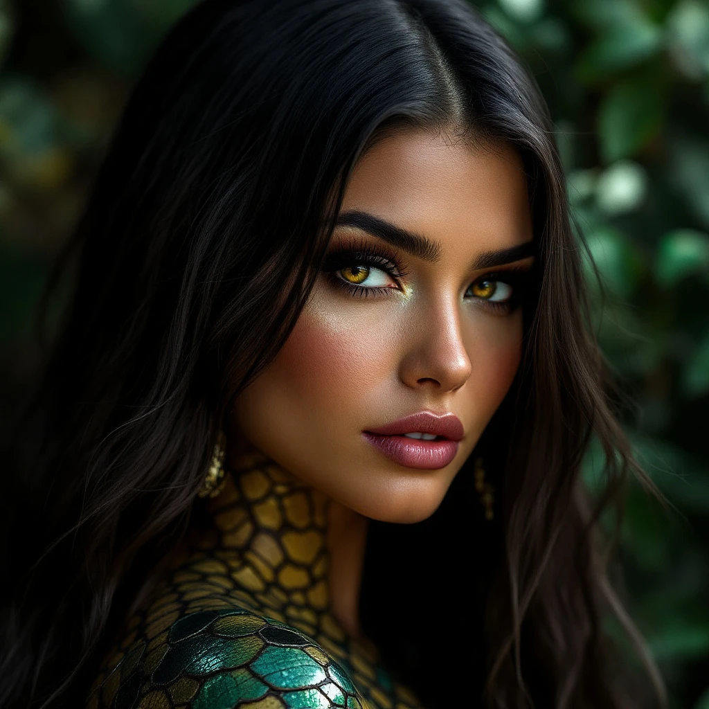 Certainly! Here’s a detailed description of a sexy, curvy, revealing gator hybrid female: **The Alluring Gator Hybrid**: This captivating hybrid embodies both the allure of femininity and the wild essence of a gator, creating a striking figure that is both enchanting and powerful. **Physical Appearance**: Her skin is a smooth blend of human tones with iridescent green and teal scales that shimmer subtly in the light. The scales accentuate her curves, particularly along her thighs, hips, and shoulders, adding a touch of exotic flair. She possesses a curvy silhouette that highlights her femininity—bold hips, a defined waist. **Face and Hair**: Her face is a harmonious mix of human beauty and alligator traits, featuring high cheekbones and full lips that exude confidence. Her eyes are large and captivating, with a rich golden or emerald hue, framed by long, dark lashes. These eyes have a hint of reptilian intrigue, perhaps with slit pupils that glimmer with mischief. Her hair flows long and luxurious, perhaps in shades of dark green or deep brown, reminiscent of water reflections, cascading down her back in loose waves or soft curls. She might also have occasional scales near her hairline or along her temples, adding to her hybrid distinctiveness. **Attire**: She wears a revealing, form-fitting outfit that accentuates her curves while merging elements of both human fashion and gator-inspired aesthetics. A sleek, high-cut bikini or a crop top with cut-out sections emphasizes her hourglass figure, showcasing her smooth skin and scales. The colors of her outfit could reflect natural tones—like earthy greens, rich browns, or vibrant blues—while incorporating patterns that mimic gator skin. **Accessories**: To enhance her look, she might wear accessories like jewelry made from natural materials, such as shells, stones, or vines, giving her an organic, wild touch. Perhaps she has a stylish belt adorned with charms or feather-like accents that flow with her movements. **Personality and Aura**: This gator hybrid exudes confidence and charisma, moving with a sultry grace that commands attention. She possesses a playful yet fierce demeanor, drawing people in with her enchanting presence while hinting at a wild side inherent to her gator nature. Her laughter is infectious, and her charm is undeniable, making her both alluring and intriguing. Overall, this curvy, revealing gator hybrid female embodies a captivating blend of sensuality and power, celebrating the beauty of both her human and gator characteristics in an extraordinary way.