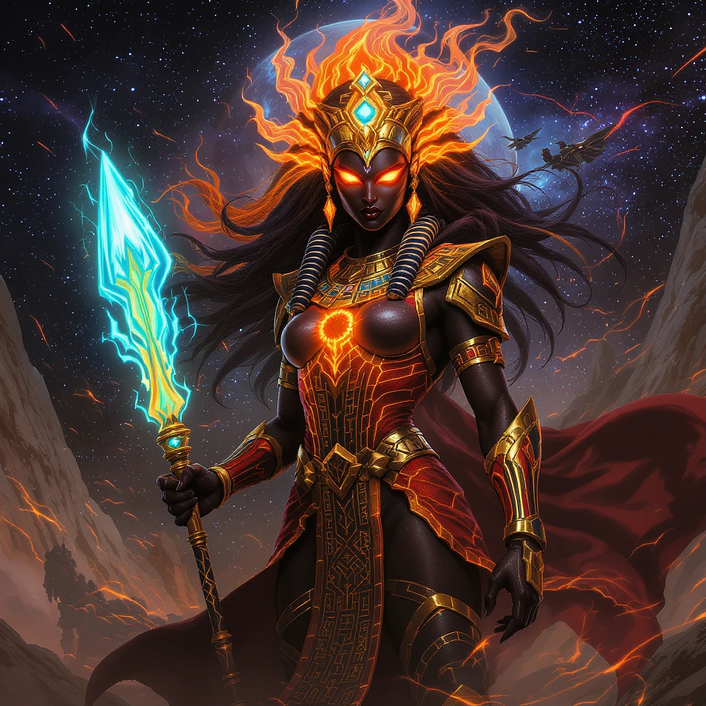 { "nft_name": "Sekhmet, Goddess of War and Healing", "collection": "Divine Neteru: Khemetic Goddesses Reborn", "description": "Sekhmet, the Khemetic goddess of war and healing, reimagined in an Afrofuturist aesthetic. This NFT captures her fierce duality, blending Khemetic mythology with futuristic digital art. ", "visual_design": { "character": { "pose": "Powerful stance, exuding strength and protection", "attire": { "type": "Armored robe", "colors": ["fiery red", "solar gold"] , "details": "Etched with circuit-like hieroglyphs, blending ancient armor with cybernetic textures" }, "crown": { "type": "Solar disk with uraeus", "details": "Blazing with neon-orange flames", "animation": "Flickering flame effect" }, "accessories": { "was_scepter": { "position": "Held in one hand", "details": "Flaming was scepter symbolizing power", "animation": "Pulsing flame glow" } }, "head": { "description": "Lioness head with a fiery mane", "animation": "Subtle mane flicker with roaring soundbites" }, "eyes": { "description": "Burning with solar intensity, reflecting her dual nature", "colors": ["neon orange", "fiery red"] } }, "background": { "setting": "Cosmic battlefield in a futuristic Kemet", "elements": [ "Holographic war chariots", "Solar flares in the sky" ], "animations": [ "Flickering solar flares", "Moving chariot silhouettes" ] } }, "afrofuturist_elements": { "description": "Fuses Khemetic ferocity with sci-fi intensity", "details": [ "Circuit-like hieroglyphs on armored robe", "Holographic war chariots and solar flares", "Flaming scepter and animated lioness mane" ], "inspiration": "Aya’s AI-driven Generating Binti Worlds" }, "color_palette": [ "fiery red", "solar gold", "neon orange", "cosmic black" ], "art_style": { "primary": "Hand-drawn detail for Khemetic authenticity", "secondary": "AI-enhanced effects for futuristic dynamism", "description": "Combines Khemetic war imagery with Afrofuturist sci-fi aesthetics, featuring subtle animations for digital vibrancy" }, "technical_specs": { "platform": "XRP Ledger (XLS-20 standard) ", "file_format": "PNG or MP4 (for animations) ", "resolution": "2048x2048 pixels", "storage": "IPFS for decentralized hosting, cached on Cloudflare for fast display", "metadata": { "attributes": [ { "trait_type": "Goddess", "value": "Sekhmet" }, { "trait_type": "Rarity", "value": "Epic (1 of 20) " }, { "trait_type": "Crown", "value": "Solar disk with uraeus" }, { "trait_type": "Animation", "value": "Flaming scepter and flickering mane"}, "prompt_summary": "Create a digital NFT artwork of Sekhmet, the Khemetic goddess of war and healing, in a powerful stance with a fiery red and solar gold armored robe etched with circuit-like hieroglyphs. Her lioness head has a fiery mane that flickers, and her solar disk crown with uraeus blazes with neon-orange flames. She holds a flaming was scepter. Her eyes burn with solar intensity. The background features a cosmic battlefield with holographic war chariots and solar flares. Use a color palette of fiery red, solar gold, neon orange, and cosmic black, blending hand-drawn Khemetic details with AI-enhanced sci-fi effects. " }