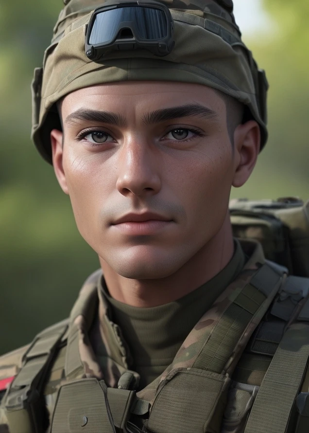 A realistic full size image of a soldier with brave, 8k quality, clear focus, natural lighting, depth field