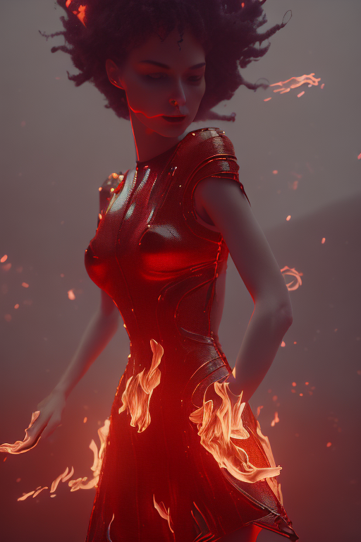 Openjourney prompt: mdjrny style v4, red dress burning flames at the b...