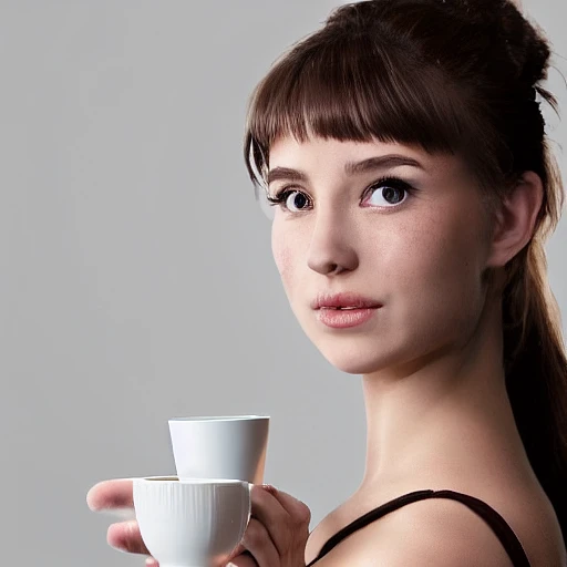 (extremely detailed CG unity 8k wallpaper) full body portrait of the most beautiful barista girl in the world, (extreme close up) , eye focus, (medium shot:1.2) , beautiful barista serving coffee, serving coffee, (blush:1.3) (freckles:0.75) , detailed symmetrical face, (ponytail hair) , ((bangs) ), ((brown eyes) ), ((brown hair:1.3) ), reflective eyes, (detailed eyes) , mascara, makeup, (red lipstick) , (shiny lips) , (white sclera) , (strong jaw) , prominent cheekbones, (smile) , cozy, (heavy eyeshadow) , tattoos, detailed lighting, rim lighting, dramatic lighting, chiaroscuro, (brown wool cardigan:1.4) , (white lace crop top) , (lace) , midriff, ((high waisted white jeans:1.3) ), ((white pants) ), (cleavage) , (latina:1.6) , ((ruddy brown skin color:1.6) , cafe, modern interior design, stomach muscles, (from below) , professional majestic impressionism oil painting by Waterhouse, John Constable, Ed Blinkey, Atey Ghailan, Studio Ghibli, by Jeremy Mann, Greg Manchess, Antonio Moro, trending on ArtStation, trending on CGSociety, Intricate, High Detail, dramatic, makoto shinkai kyoto, trending on artstation, trending on CGsociety