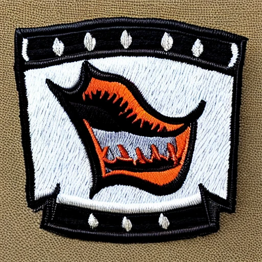 A curricular embroidered patch, image of a vampire mouth with fangs , highly detailed, no background