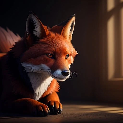 A steampunk red lush fox, Midjourney style, Lovecraftian | horror | unreal engine | raytracing| ray tracing, hyper details, very dark lighting, heavy shadows, detailed, ( photo realistic, realistic, dramatic, dark, sharp focus, 8k) . wide angle, digital art, realistic painting, dnd, trending on artstation, soft natural lighting, portrait photography, magic photography, dramatic lighting, photorealism, excessive detailing, intricate, hyper detailed, artstation, concept art, smooth, sharp focus, ray tracing, hyper details, volumetric lighting, cinematic lights