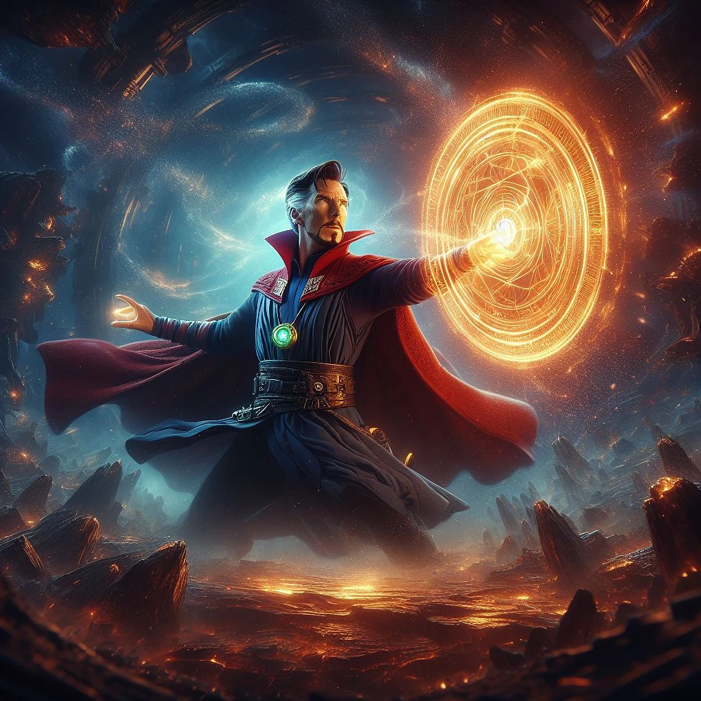 Doctor Strange opening a portal to another dimension, masterpiece, octane rendering, 8k, raytracing