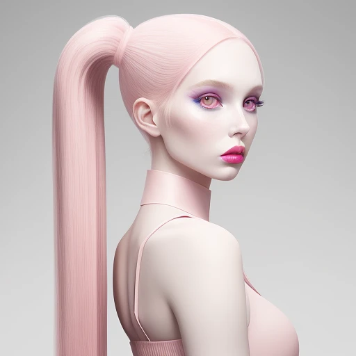 Vogue Runway Model with long Pigtails in the style of candycore hair, pale skin and light pink lips --v 6. 0 --ar 4:5