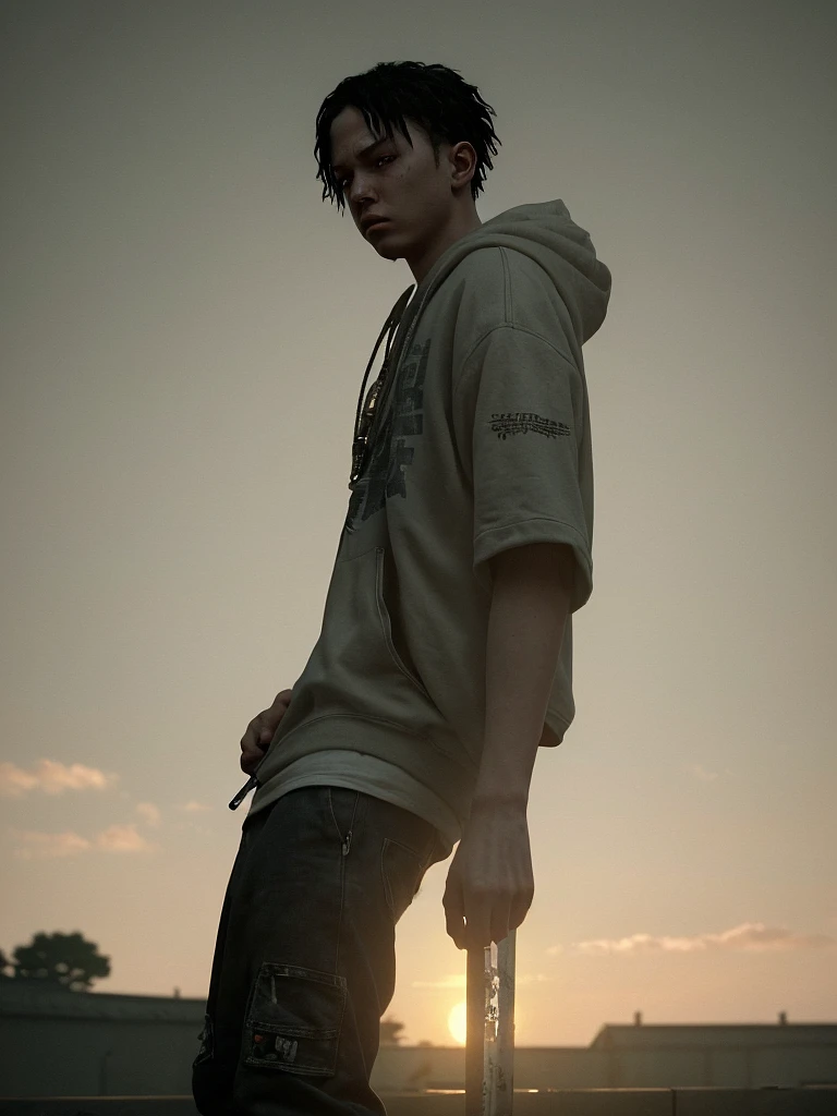 Photo of a ultra realistic rapper daily life, dramatic light, pale sunrise, cinematic lighting, battered, low angle, trending on artstation, 4k, hyper realistic, focused, extreme details, unreal engine 5, cinematic, masterpiece, art by studio ghibli, intricate artwork by john william turner