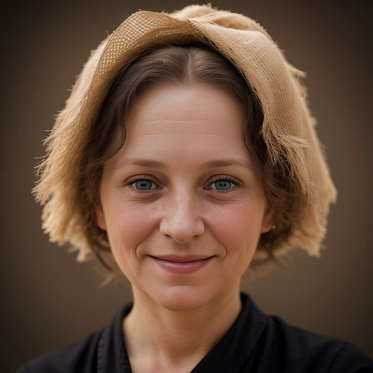 hyper realistic headshot photo of a 40 year old, amish woman, looking into the camera, smiling slightly, ultrarealistic, soft lighting, 8k