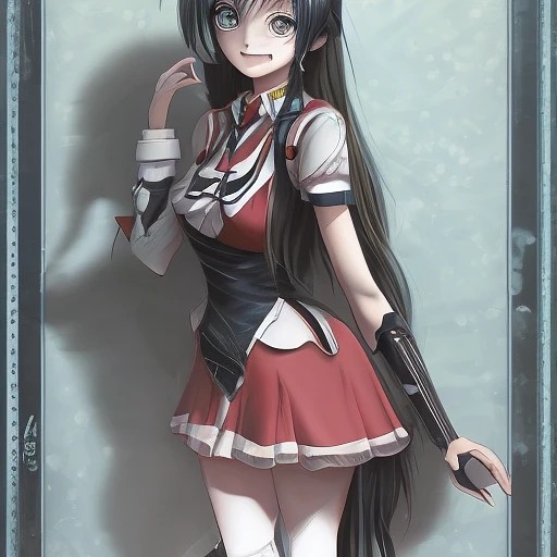 Beautiful highschool girl in uniform turns around with a smile with tears, long hair in buns, anime, detailed --v 4