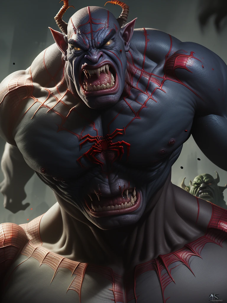 body portrait, very angry spiderman orc, intimidating, menacing, powerful, low angle, horror, octane render, smooth, sharp focus, dramatic light, fine details, masterpiece, trending on artstation, 4 k, art by stanley lau and jason chan and mark hill