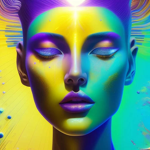 3 d, sci - fi, prismatic sun rays beautiful stunning fashion model face, yellow faces, cinematic, vogue cover style, poster artistic purple and deep turquoise blue mood, realistic painting, intricate oil painting, high detail, figurative art, multiple exposure, poster art, 3 d, by tooth wu and wlop and beeple and greg rutkowski --q 2 --v 5 --ar 3:4