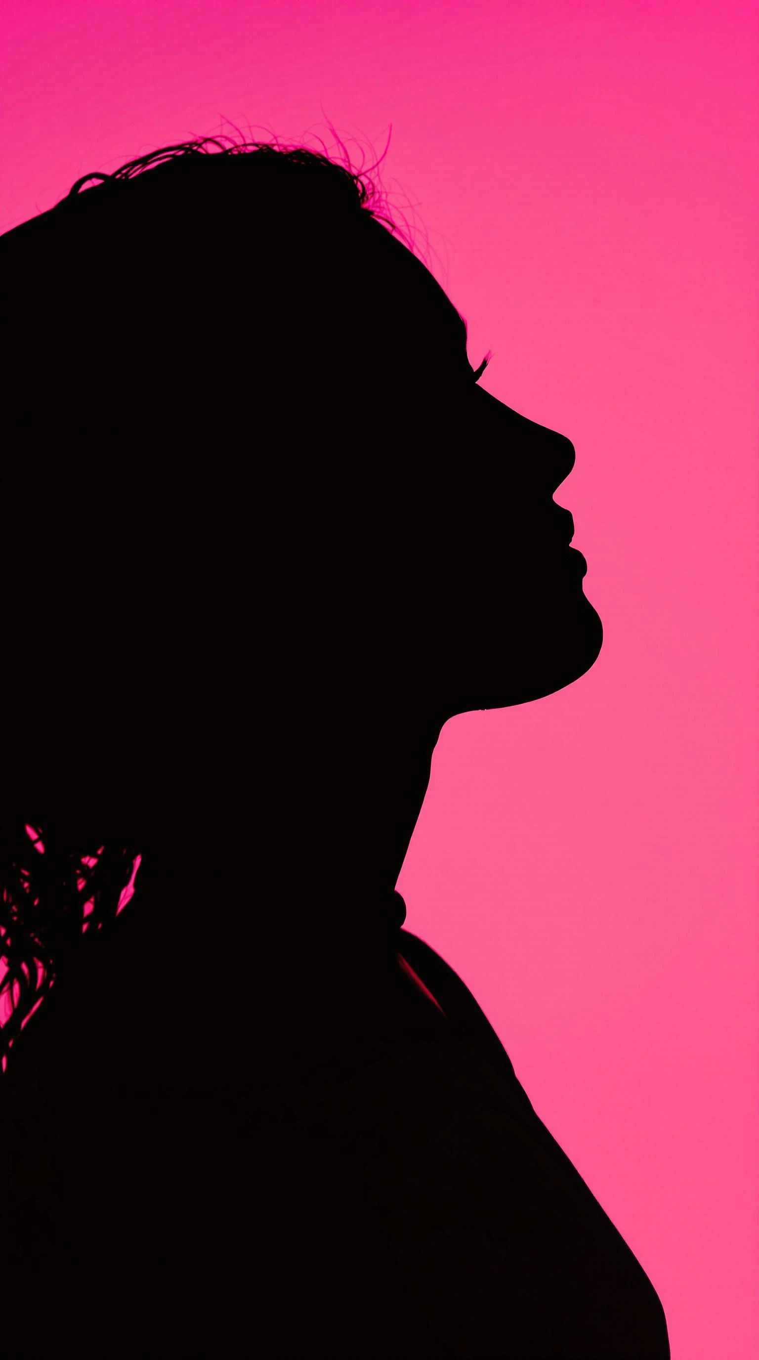 photography, portrait of contrast, profile silhouette of a woman, vibrant hot pink backdrop, visualize using a camera setup that mimics a large aperture, focusing solely on the silhouette's edge, while a low ISO maintains the richness of color without grain, photorealistic, UHD --ar 9:16 --chaos 1. 7 --style raw