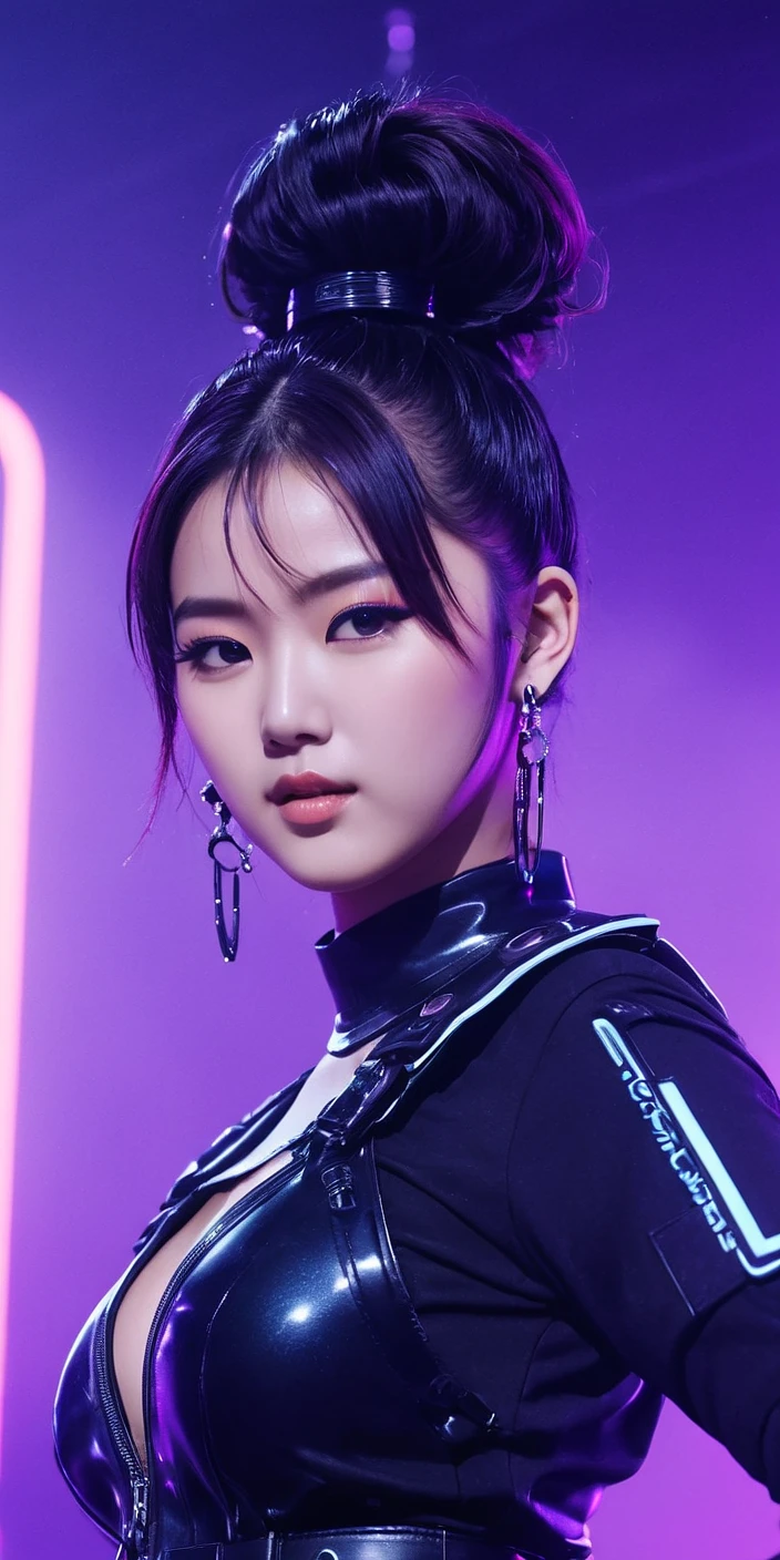neonpunk style 20-year-old Japanese pop idol, on stage, lively dance, singing, cute appearance, energetic concert atmosphere, colorful lighting, stylish stage design, kawaii fashion, youthful energy, pop music scene, bright colors, engaging with audience, dynamic performance, fashion-forward --ar 16:9 --v 6. 0. cyberpunk, vaporwave, neon, vibes, vibrant, stunningly beautiful, crisp, detailed, sleek, ultramodern, magenta highlights, dark purple shadows, high contrast, cinematic, ultra detailed, intricate, professional