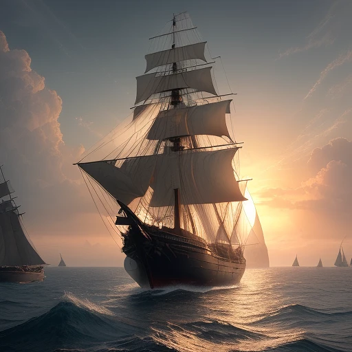 Photo of a ultra realistic sailing ship, dramatic light, pale sunrise, cinematic lighting, battered, low angle, trending on artstation, 4k, hyper realistic, focused, extreme details, unreal engine 5, cinematic, masterpiece, art by studio ghibli, intricate artwork by john william turner