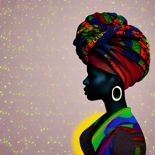Black silhouette of african american woman in a colorful head wrap and with an earring. Beautiful black girl profile