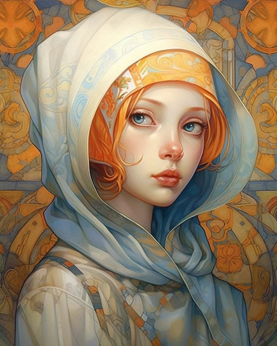 Girl with a Pearl Earring::1 in the style of stained glass window::0. 5, art nouveau