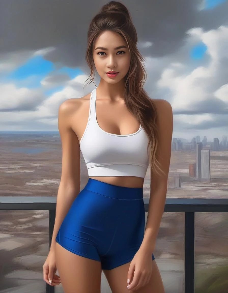 (extremely detailed CG unity 8k wallpaper) full body portrait of the most beautiful fitness girl in the world, (Extreme close up:1.4) , ((medium shot) ), beautiful fitness girl walking downtown, (runway walk) , ((walking) ), ((tanned skin:1.3) ), (blush) long hair, (freckles:0.75) , detailed symmetrical face, (medium blonde hair:1.2) , (ponytail hair) , ((blue eyes) ), reflective eyes, (makeup) , (red lipstick) , (shiny lips) , (white sclera) , (strong jaw, prominent cheekbones, (sweat) , detailed lighting, rim lighting, dramatic lighting, chiaroscuro, ((white sports bra) ), (fitness watch) , White sneakers, ((pleated skirt) ), (blue plaid skirt) , (thigh socks) , ((snapback cap) ), ((modern city street) ), blue sky, white clouds, (muscles:1.2) , toned, (legs) , thighs, (high angle:1.4) , (professional majestic impressionism oil painting by Waterhouse:0.75) , John Constable, Ed Blinkey, Atey Ghailan, by Jeremy Mann, Greg Manchess, Antonio Moro, trending on ArtStation, trending on CGSociety, Intricate, High Detail, dramatic, trending on artstation, trending on instagram