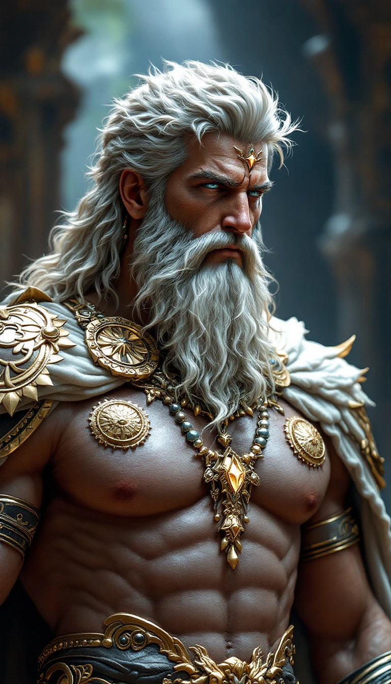 Zeus, greece, fantasy light armor withe many accessories and detailles, beauty, 4k, ultra hd, god, mystic