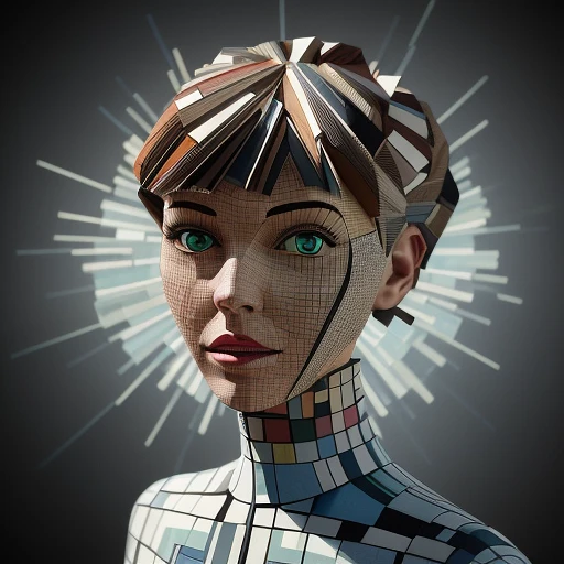 A woman made with mid-century modern collage, made of random shapes cut from fashion and science magazines and text books, of 2022, trending on instagram, by Dan Mumford and Junji Ito and Daniel Gerhartz, unreal 5, DAZ, hyperrealistic, octane render, cosplay, RPG portrait, dynamic lighting, intricate detail, summer vibrancy --ar 3:2 --v 5. 1