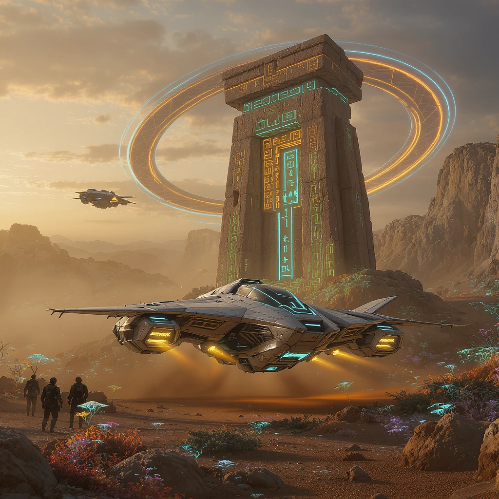 Designed to maximize clarity, style consistency, and visual impact while adhering to best practices for AI generation: **"Futuristic ancient megalithic adventure scene"**, ultra-detailed cinematic render, Unreal Engine 5 RTX, Octane hyper-realism. **Scene:** - A **Tartaria-Egyptian hybrid megalith** (sandstone + obsidian) towers in the background, covered in **glowing hieroglyphs** and **flanked by two advanced hypersonic spaceships** with: - **Mercury-vortex engines** (liquid metal swirling) - **Wings inspired by Abydos falcon deities** (ochre tribal markings) - **Neon-orange/cyan plasma trails** **Foreground:** - A **landing diamond-armored scout ship** (hyper-reflective fractal glass cockpit, symmetrical hull) undergoes inspection by: - **Cybernetic observers** (chromium limbs, hydraulic tendons, HUD implants projecting scan-lines) - **Bioluminescent jungle flora** (neon teal vines, pulsating mushrooms) casting volumetric glow. **Background:** - A **massive hyperspace ring** (Tartaria arch design) orbits in the sky during sunrise, emitting a faint wormhole ripple. - **Sunrise lighting** (golden hour) mixes with **depot spotlights** and **neon flora glow**, creating triadic contrast. **Art Direction:** - **Style:** Hyper-realistic, hard-surface sci-fi (reminiscent of *Simon Stålenhag* + *Beeple*) . - **Palette:** - **Warm:** Abydos ochre, sunrise gold - **Cool:** Metallic silver, bioluminescent teal - **Accents:** Neon orange (engines) , hyper-reflective chrome - **Textures:** Scratched metal, carbon fiber, smudged glass, sand-blasted stone. - **Composition:** Golden ratio, wide-angle for grandeur, depth layers (foreground ship/mid jungle/back megalith) . **Technical Notes:** - **--ar 9:16 --style raw --v 6. 1** (or **--v 6** if artifacts occur) . - **Watermark:** Add *"JDHampton × AI"* in bottom-right (sans-serif, 10% opacity) via post-processing if needed. --- ### **Key Tags for PromptHero Visibility:** #JDHampton #TartariaSciFi #AbydosCore #HyperRealistic #CinematicLighting #BioluminescentJungle #AncientAdvanced #SpaceshipDesign --- ### **Pro Tips:** 1. **Hierarchy Matters**: The AI prioritizes the first 100 tokens. Keep critical elements (Tartaria, ships, bioluminescence) early. 2. **Style References**: Adding *"inspired by Simon Stålenhag"* can help anchor the aesthetic. 3. **Avoid Overcrowding**: If the AI merges ships/megalith, add **"distinct separation"** or **"clear depth layers"**. 4. **Upscale Smartly**: Use **ControlNet Tile** + **UltraSharp** in post-processing to refine details. --- This version balances specificity with flexibility, ensuring the AI grasps the core vision while leaving room for creative interpretation. Why This Matters: It’s transparent about AI’s role while highlighting “your” artistic vision (you’re the director here!) . JDHampton | AI-assisted concept