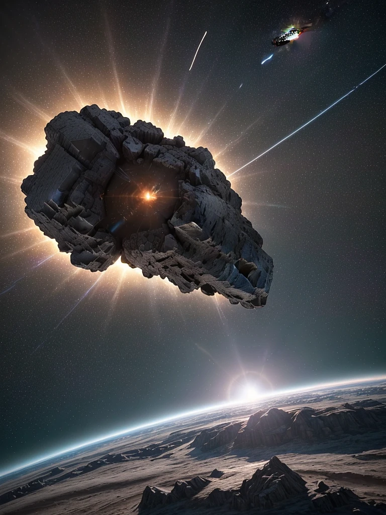 Photo of a ultra realistic meteor on collision course with earth, bright light, cinematic lighting, battered, low angle, trending on artstation, 8k ultra HD, hyper realistic, focused, extreme details, unreal engine 5, cinematic, masterpiece, art by studio ghibli, intricate artwork by john william turner