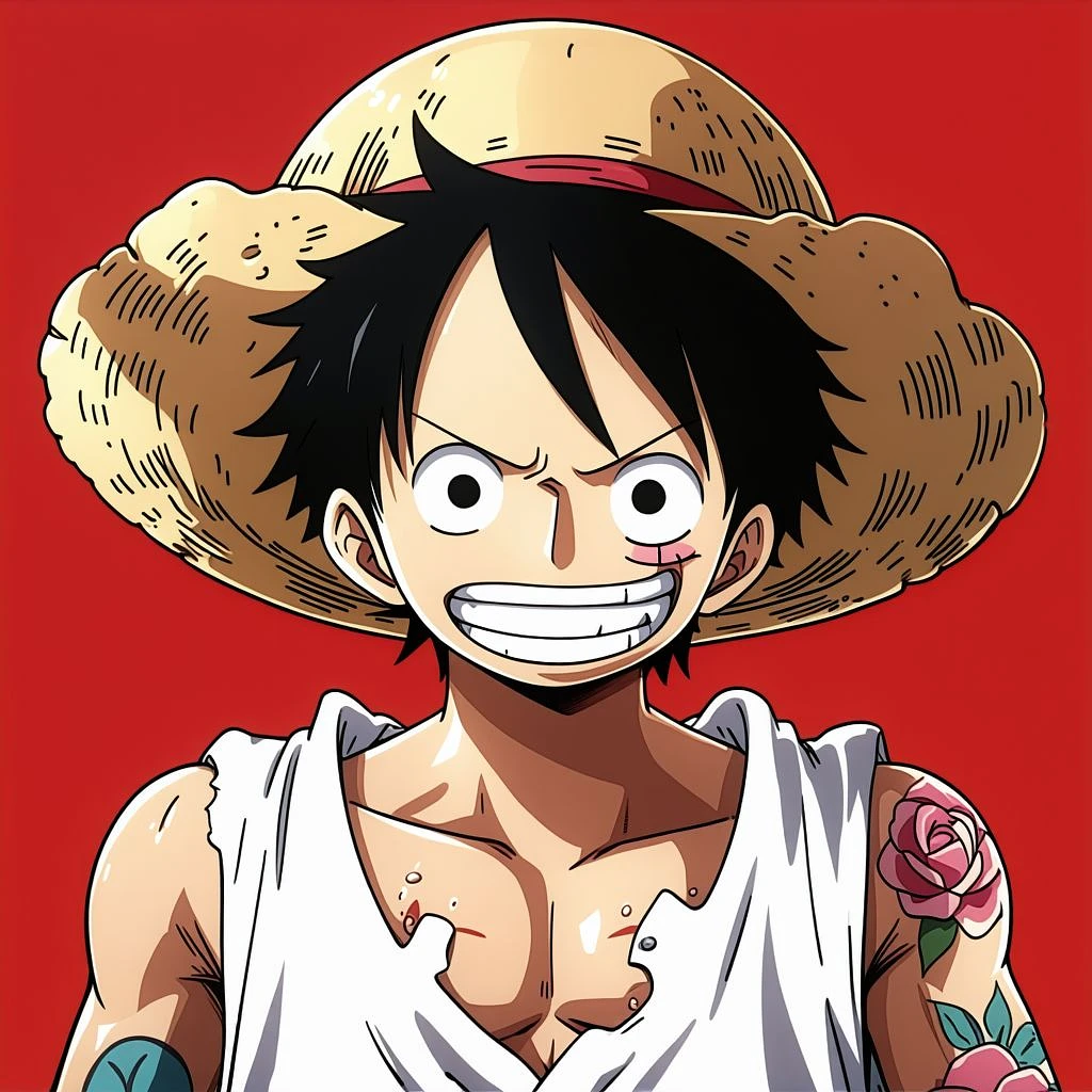 one piece, luffy in gear 5, white clothes, anime style, solo, mature, intense, detailed eyes, , bare shoulders, new school tattoo, design, smile , masterpiece, best quality, absurdes, <lora:xl:0.8>