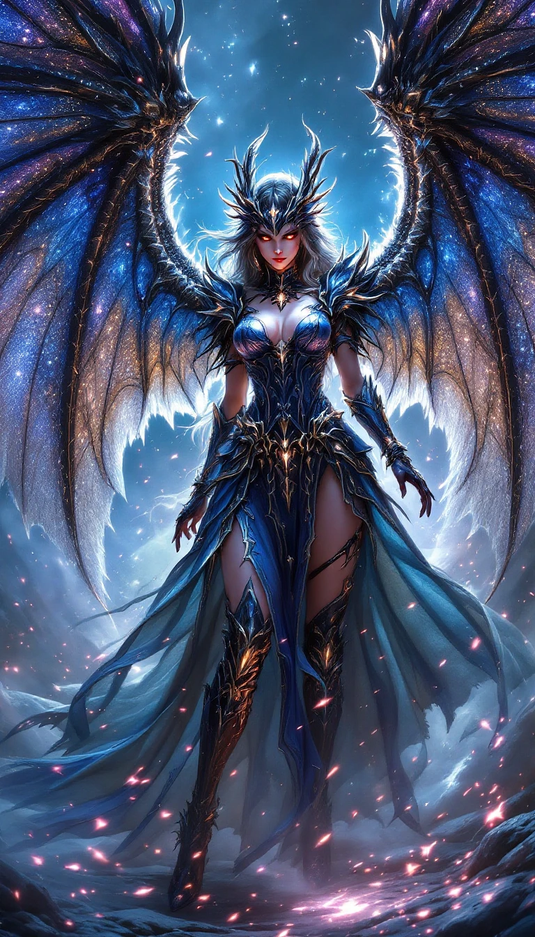 final fantasy, babe, fantasy big beautifull dragon wings armor with extrem many dettails and accesories, glowing, mystic