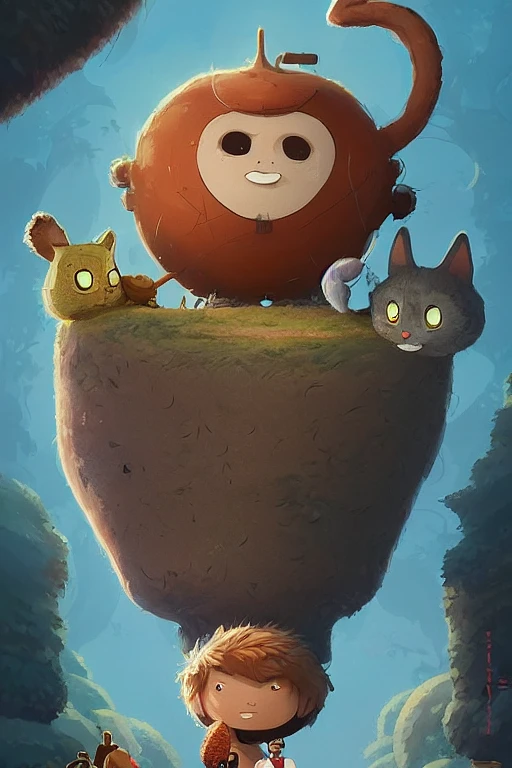 round antropomorphic acorn and his cat friend in a slice of life movie, cerebri movie poster, by nuri iyem, james gurney, james jean, greg rutkowski, anato finnstark. pixar. hyper detailed, 5 0 mm, award winning photography, perfect faces