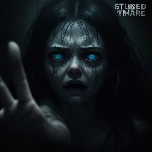 A chilling horror movie poster with title 'Unreal' at top , and subtitle 'Amplified By Night' at bottom. The poster is showing a terrified woman as she reaches out toward the viewer. In the palm of her hand, stark and haunting text reads 'SATORI'. Dark background, ominous, eerie, unsettling mood. Include a movie studio logo that reads 'GROOVE LAB MUSIC'. The poster aesthetic evoke a sense of dread and mystery, a feeling of unease, portraying a sinister story behind the image.