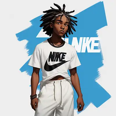 A black boy with hair with a few braids not too long, nose a little wide, in an urban style, just looking straight ahead, white t-shirt with jagger pants, arms open, lots of color, with transparent background that the illustration is the protagonist, complete character from head to toe, nike shoes in cartoon style. I would be standing facing the front giving the 5. Remove the nike logo on the tshirt